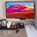 Boendet erbjuder rum med sitthörna tillsammans med strykjärn med strykbräda, strykutrustning och luftkonditionering samt plattskärms-TV med satellitkanaler och flerkanals TV. De är inredda med skrivbord, och har också te-/kaffebryggare och vattenkokare. I badrummen finns en separat toalett och en dusch. Det finns också hårtorkar och badmössor.
